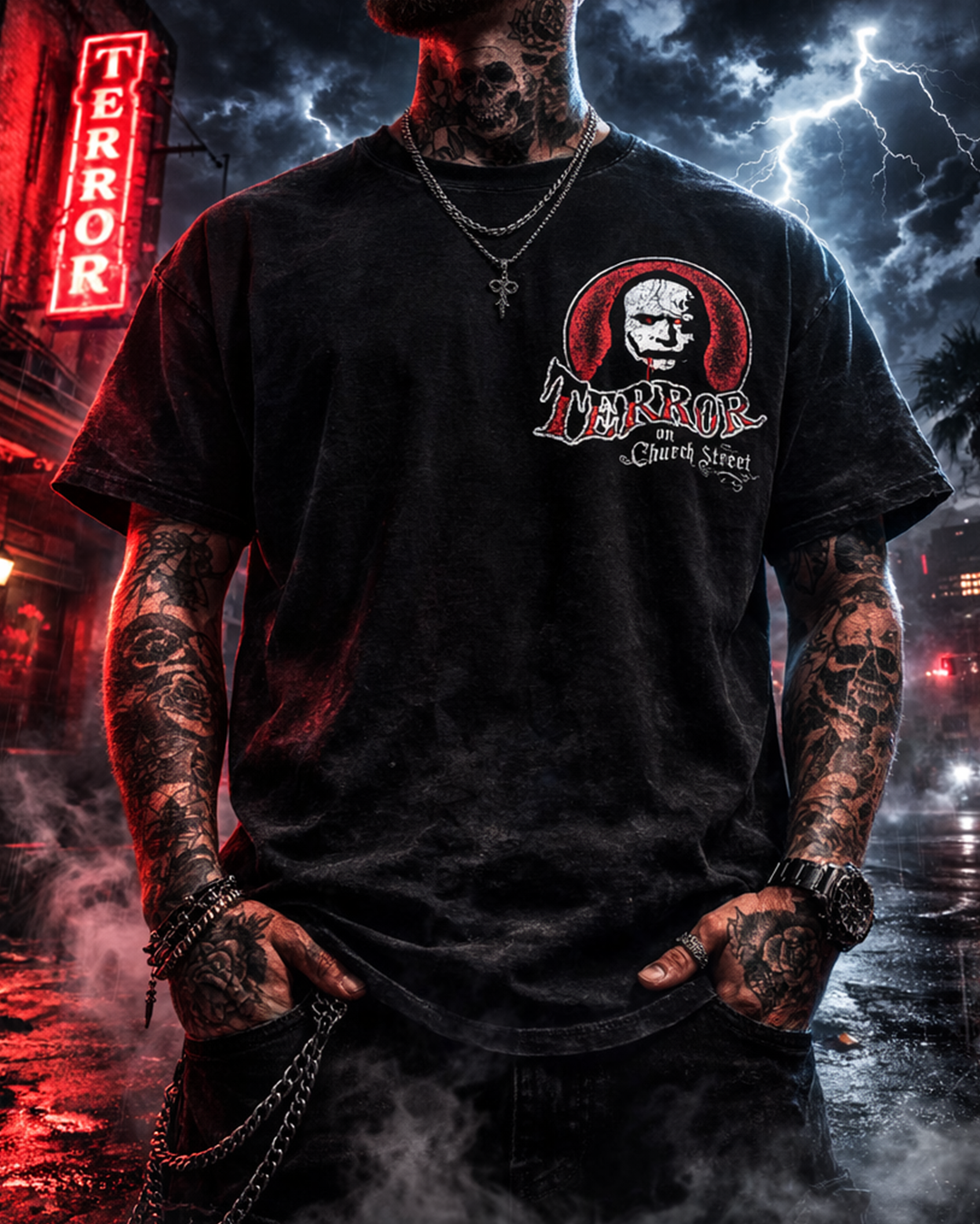 This design for a local brand honors a legendary piece of Orlando’s history—Terror on Church Street. This iconic horror attraction, which operated in Downtown Orlando from 1991 to 1999, was renowned for its eerie atmosphere, live actors, and emphasis on psychological terror over traditional jump scares. More than just a haunted house, T.O.C.S. helped shape the haunted attraction industry and laid the groundwork for Halloween Horror Nights.
